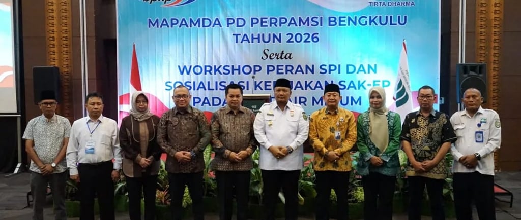Dalam sambutannya, Wakil Wali Kota Bengkulu Ronny P. L. Tobing menyampaikan apresiasi atas terselenggaranya MAPAMDA PD PERPAMSI Provinsi Bengkulu Tahun 2026 yang sekaligus dirangkaikan dengan Workshop Peran Satuan Pengawasan Intern (SPI) dan Sosialisasi Kebijakan Standar Akuntansi Keuangan Entitas Privat (SAK-EP) pada BUMD Air Minum.